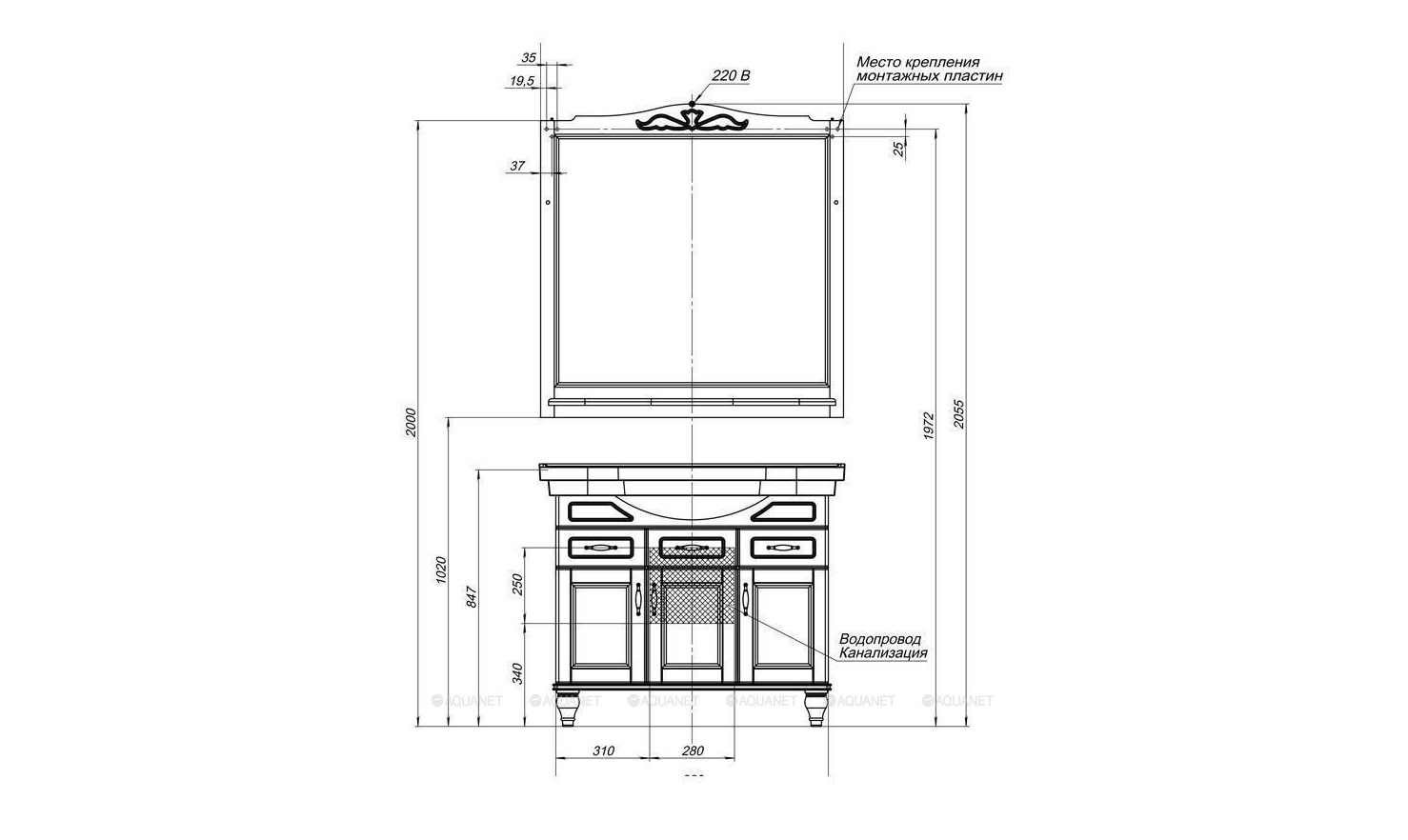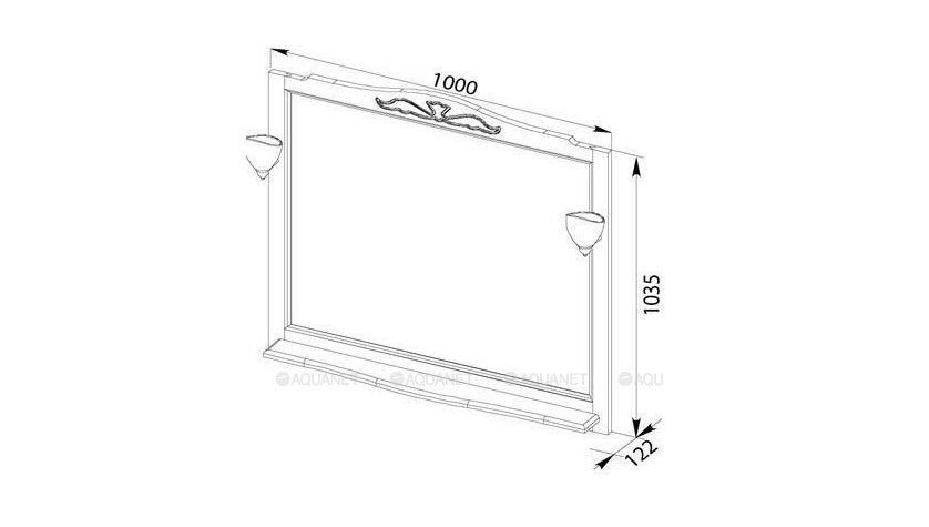 Резная форма рамы придает конструкции нежность и мягкость. Компактная полочка под зеркалом предусмотрена для размещения часто используемых гигиенических средств. При заказе дополнительно элегантных бра в виде цветов зеркало приобретет особый шарм.
