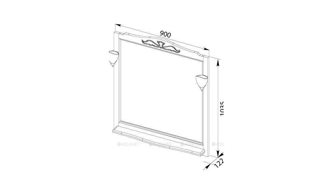 Верх рамы украшен декоративным нанесением, оригинальная форма создает изысканный, неповторимый образ. Под зеркалом предусмотрена компактная полочка для самых необходимых средств и принадлежностей. При заказе дополнительно элегантных бра в виде цветов зеркало приобретет особый шарм.