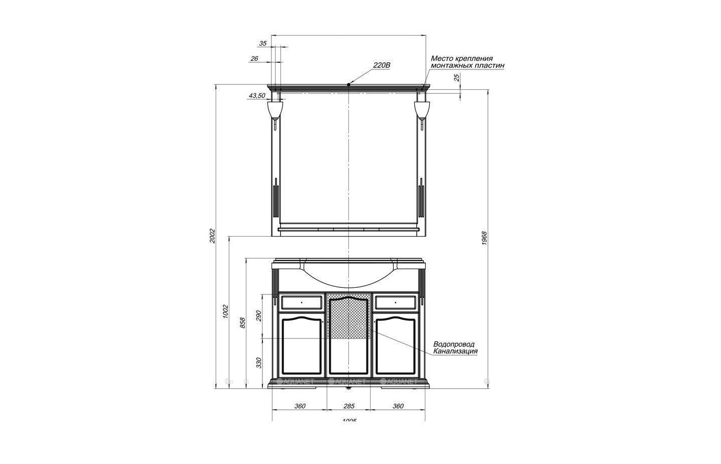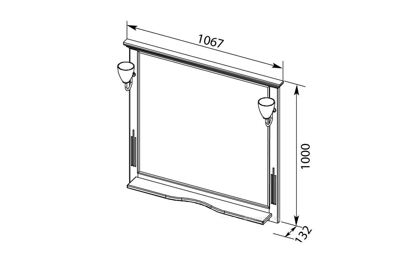 Под зеркальным полотном предусмотрена компактная полочка для самых любимых косметических средств. Массивная конструкция не только придает внушительность, но и обеспечивает удобство при использовании изделия.