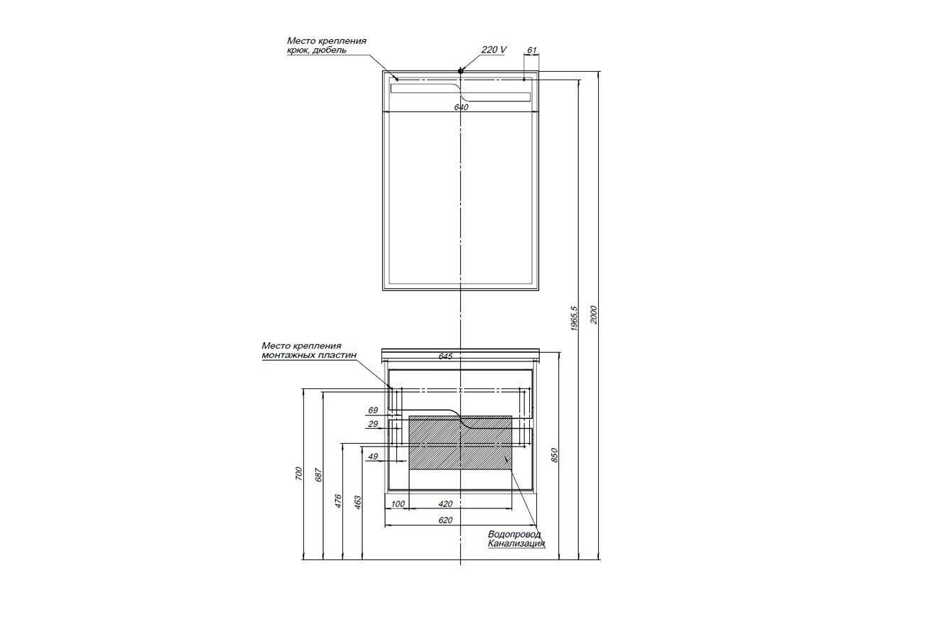 - Зеркало: Aquanet Модена 65 LED, цвет белый, встроенный LED светильник (198488)