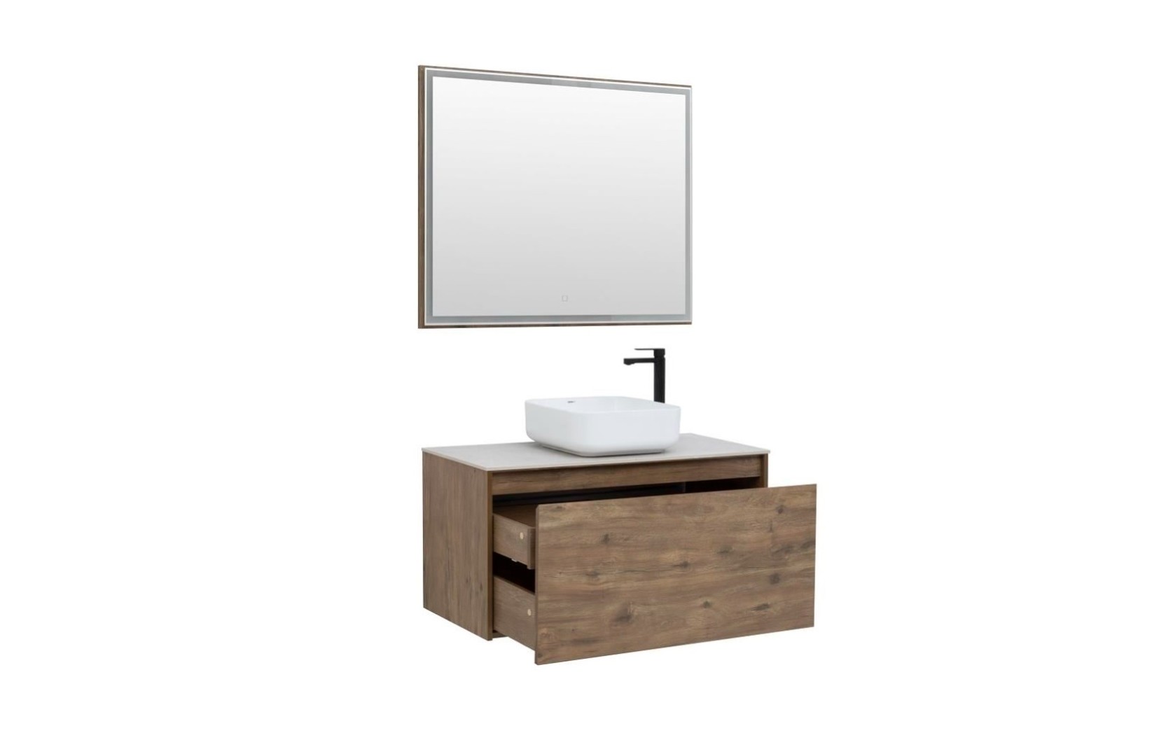 - Зеркало: Aquanet Nova Lite 100, цвет дуб рустикальный, LED (249519)