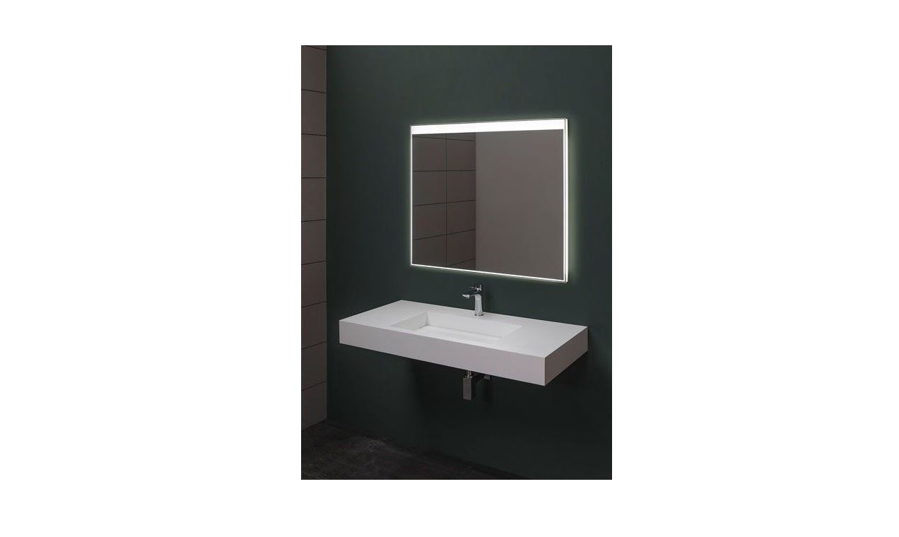 Включение и выключение светильника происходит с помощью инфракрасного датчика, а он расположен в нижней части зеркала, то есть на той стороне, которая находится напротив широкой светящейся полосы.