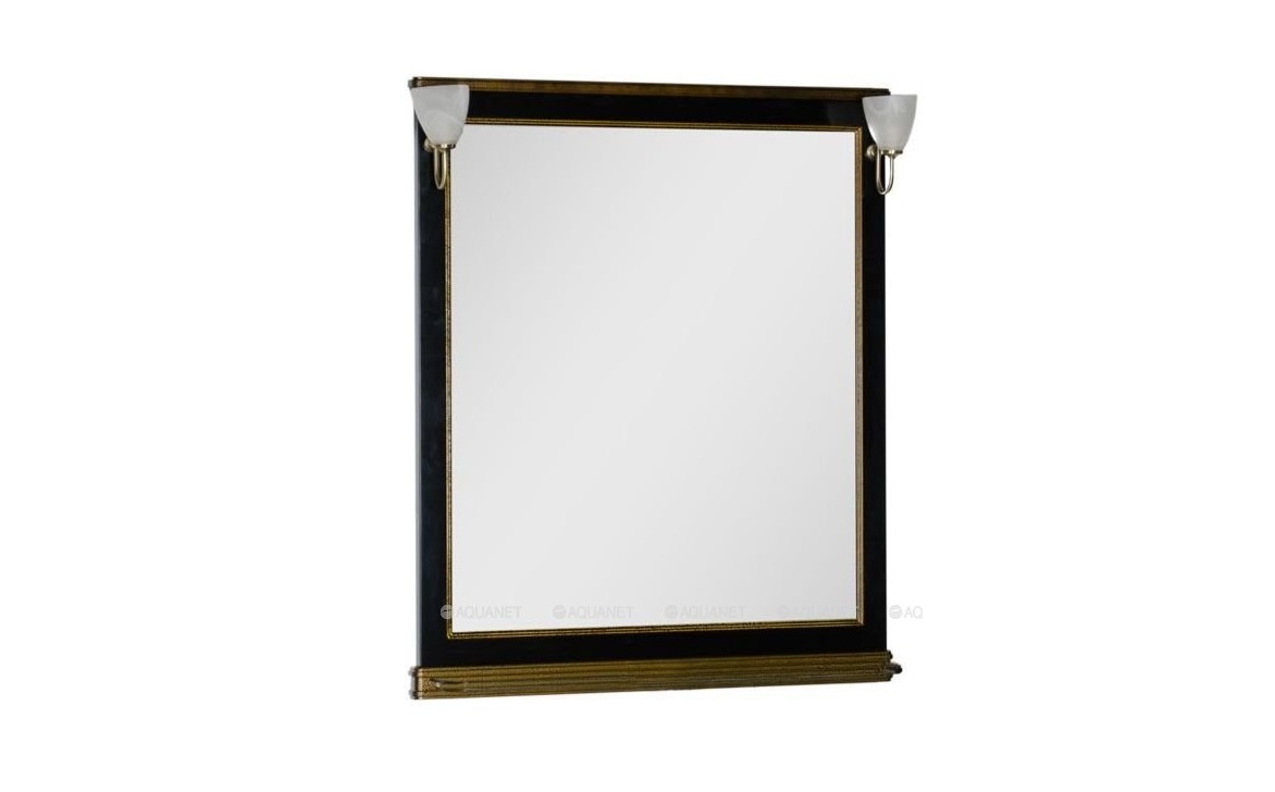Зеркало «Aquanet» Валенса 100 Черный Краколет, Золото для ванной комнаты — новое предложение для тех, кто предпочитает в дизайне интерьера неоклассический стиль. Отделка рамы и полки создана вручную с помощью специальной техники покраски краколет (или же кракелюр) создающей изящный эффект состаривания.