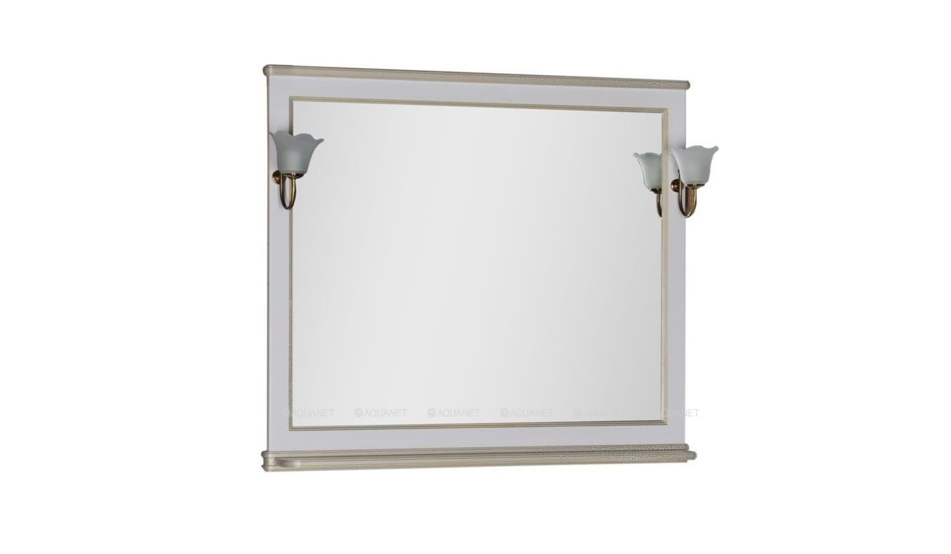 Элегантные бра в виде бутонов цветов создают мягкое освещение, только их необходимо заказать. Aquanet применяет простую и надежную систему подвеса зеркал, положение которых удобно регулировать на монтажной пластине по горизонтали и вертикали.