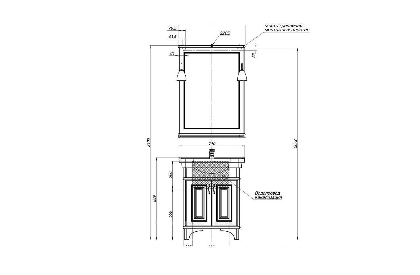 Элегантные бра в виде бутонов цветов создают мягкое освещение, только их необходимо заказать. Aquanet применяет простую и надежную систему подвеса зеркал, положение которых удобно регулировать на монтажной пластине по горизонтали и вертикали.
