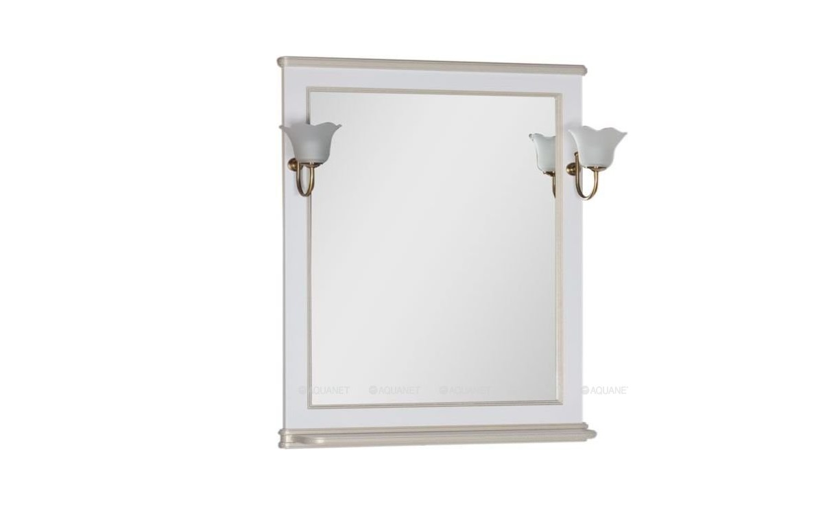 Зеркало «Aquanet» Валенса 80 Белый Краколет, Золото для ванной комнаты — новое предложение для тех, кто предпочитает в дизайне интерьера неоклассический стиль. Отделка рамы и полки создана вручную с помощью специальной техники покраски краколет (или же кракелюр) создающей изящный эффект состаривания.