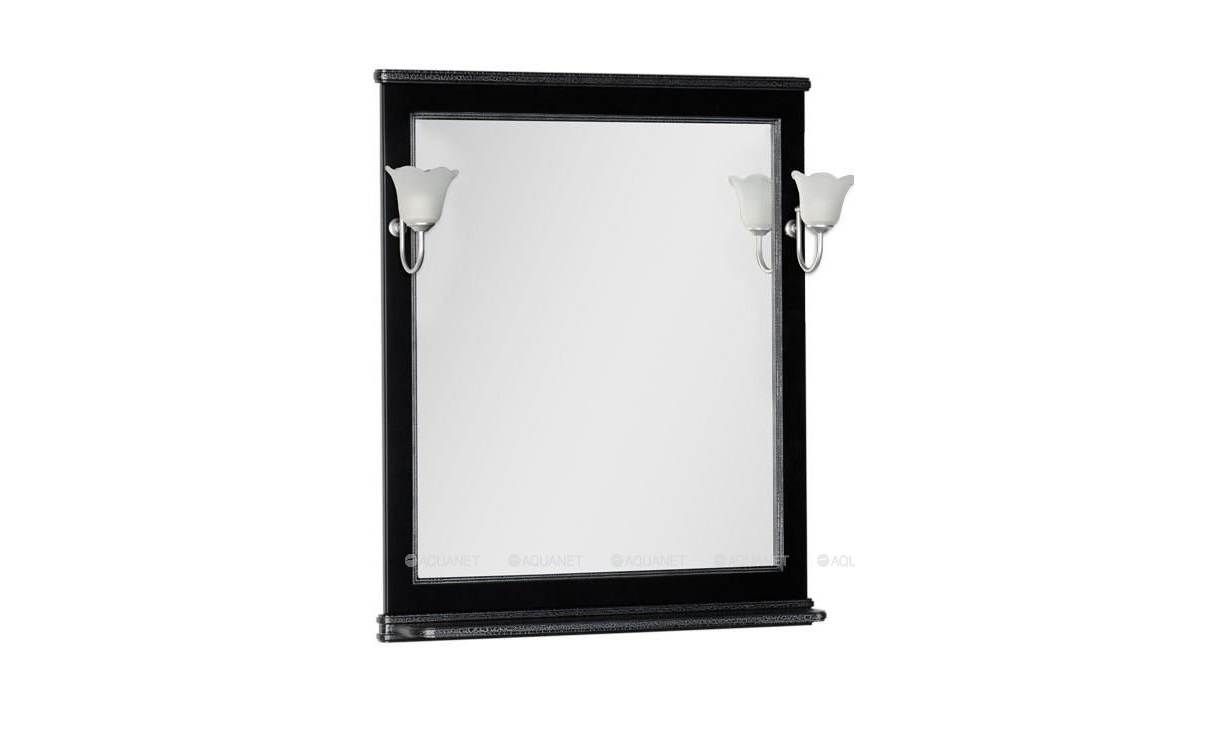 Зеркало «Aquanet» Валенса 80 Черный Краколет, Серебро для ванной комнаты — новое предложение для тех, кто предпочитает в дизайне интерьера неоклассический стиль. Отделка рамы и полки создана вручную с помощью специальной техники покраски краколет (или же кракелюр) создающей изящный эффект состаривания.