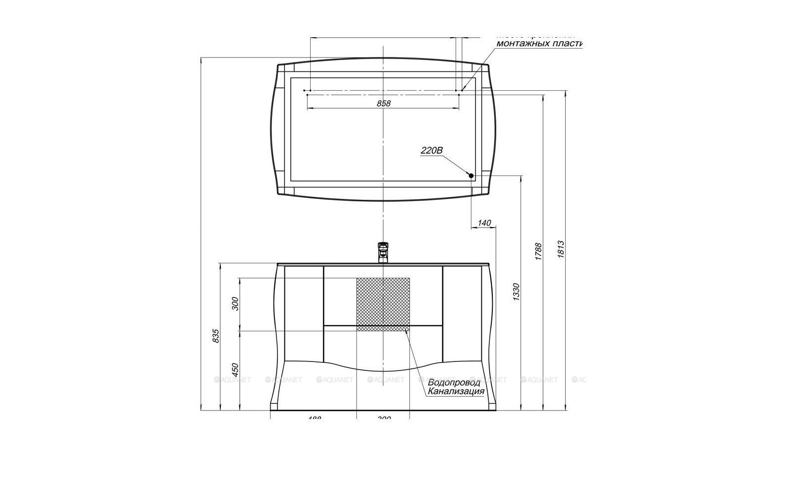 Зеркало может приобретаться отдельно или в комплекте с тумбой гарнитура Акванет Виктория. Зеркало имеет встроенную систему подсветки, устроенную по его периметру, которая создает впечатление, что ровный мягкий свет льется прямо из глубины зеркального полотна.