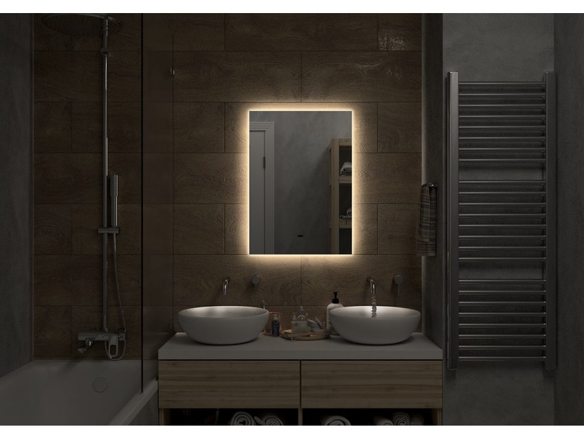 Зеркало для ванной комнаты Адонис 45 оснащено встроенным светодиодным светильником размещенным по периметру и бесконтактным сенсором включения подсветки. Изготовлено из зеркального полотна толщиной 4 мм производства ведущего европейского производителя зеркал AGC.