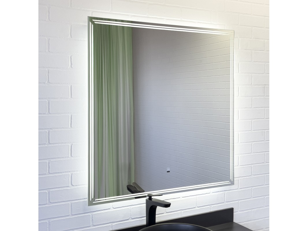 Зеркальное высококачественное полотно с амальгамой на основе серебра. Зеркало оснащено ореольной и фронтальной подсветкой с бесконтактным выключателем со встроенной функцией регулировки яркости. Температура подсветки: 6000-6500К холодный свет