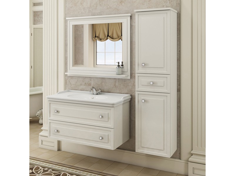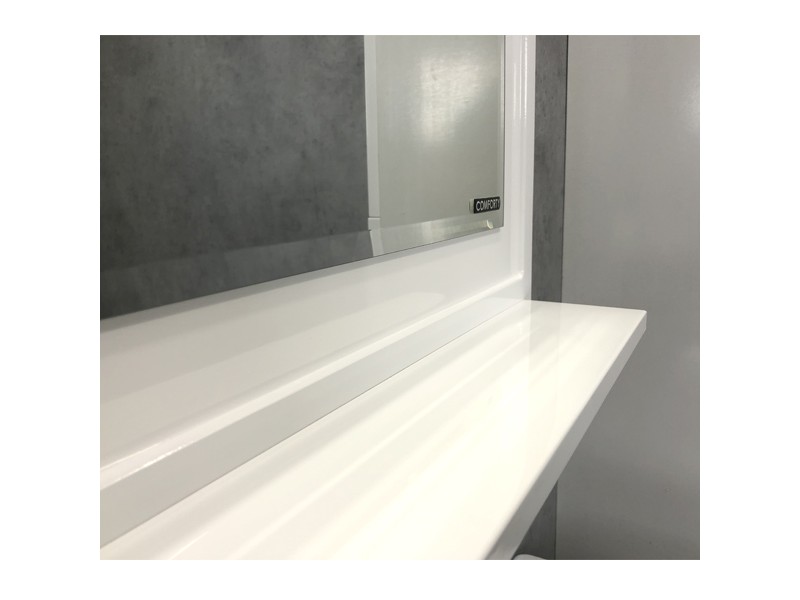 Большое зеркало с полочкой в обрамлении фигурной рамы из МДФ покрытого белой глянцевой эмалью. Высококачественное зеркальное полотно с амальгамой на основе серебра.