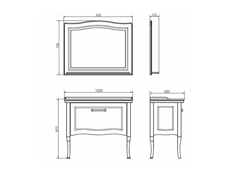 Большое зеркало с полочкой в обрамлении фигурной рамы из МДФ покрытого белой глянцевой эмалью. Высококачественное зеркальное полотно с амальгамой на основе серебра.
