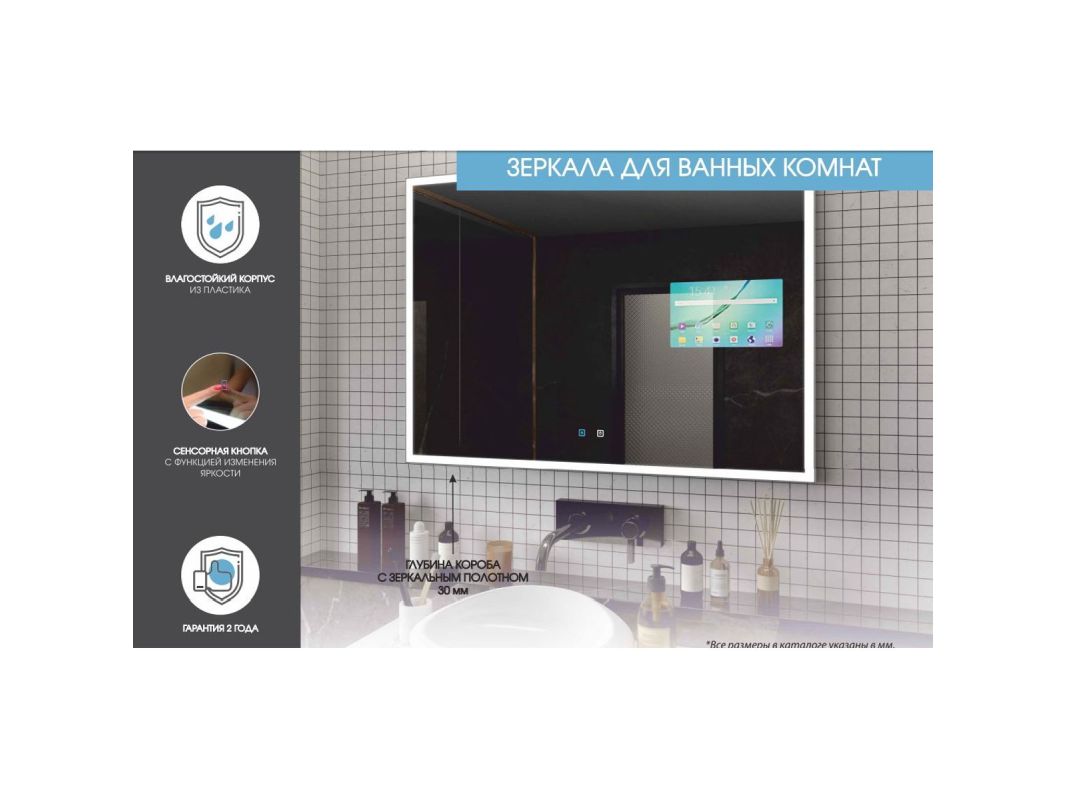 - Класс защиты IP67, что позволяет устанавливать зеркала в помещениях с повышенной влажностью;