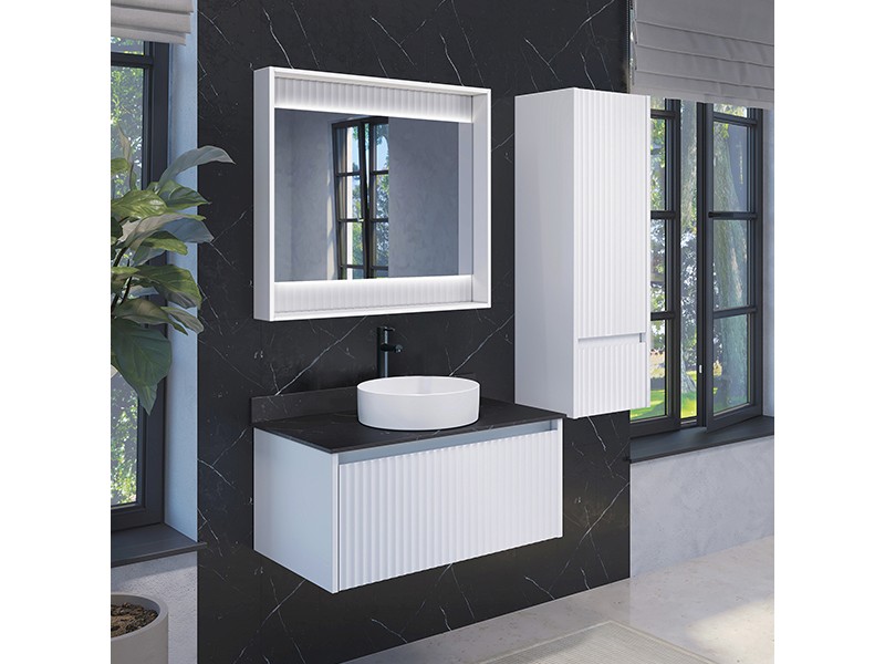 Зеркальное высококачественное полотно с амальгамой на основе серебра. Зеркало-короб оборудовано светодиодной контурной подсветкой с бесконтактным включателем.