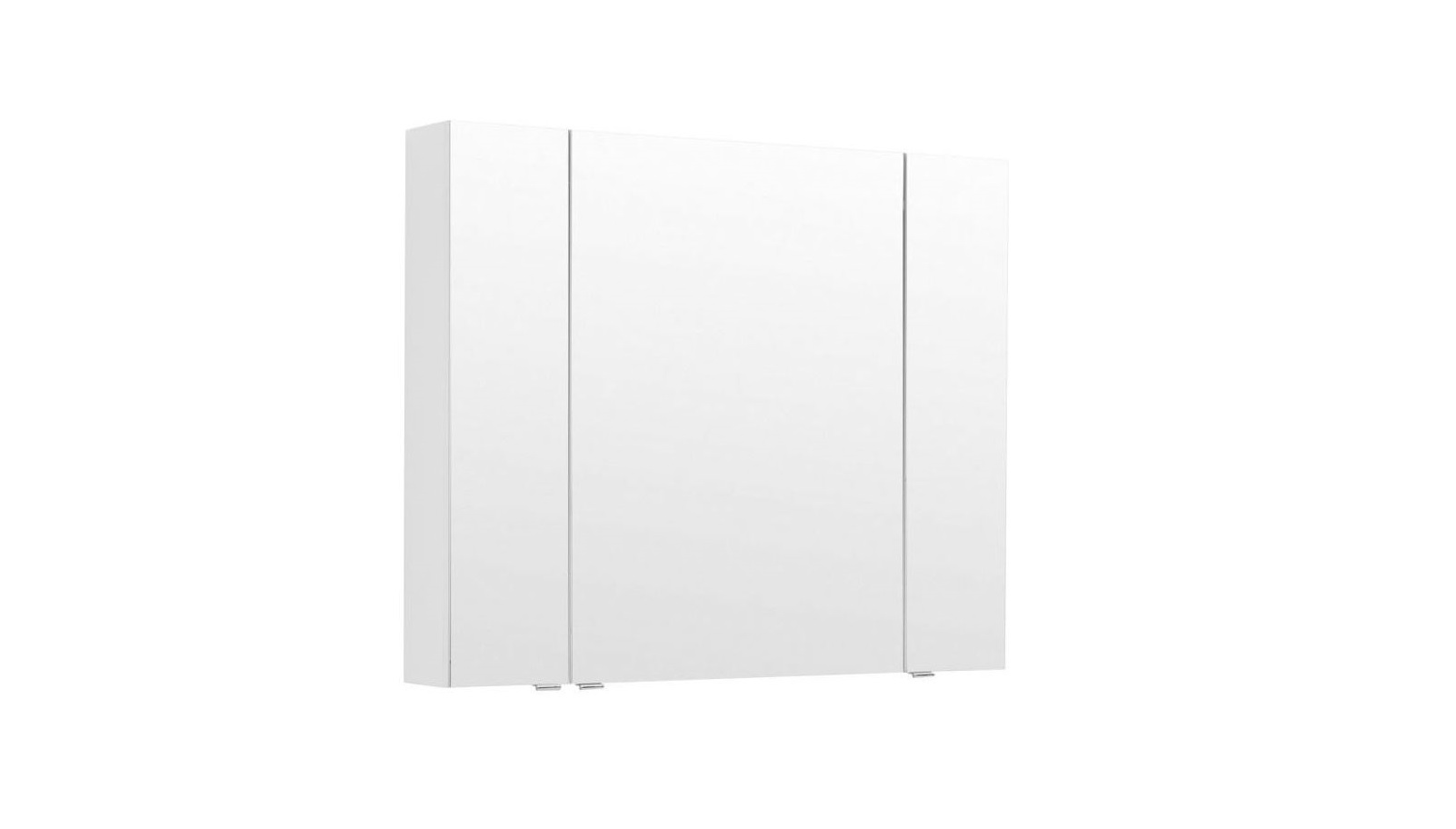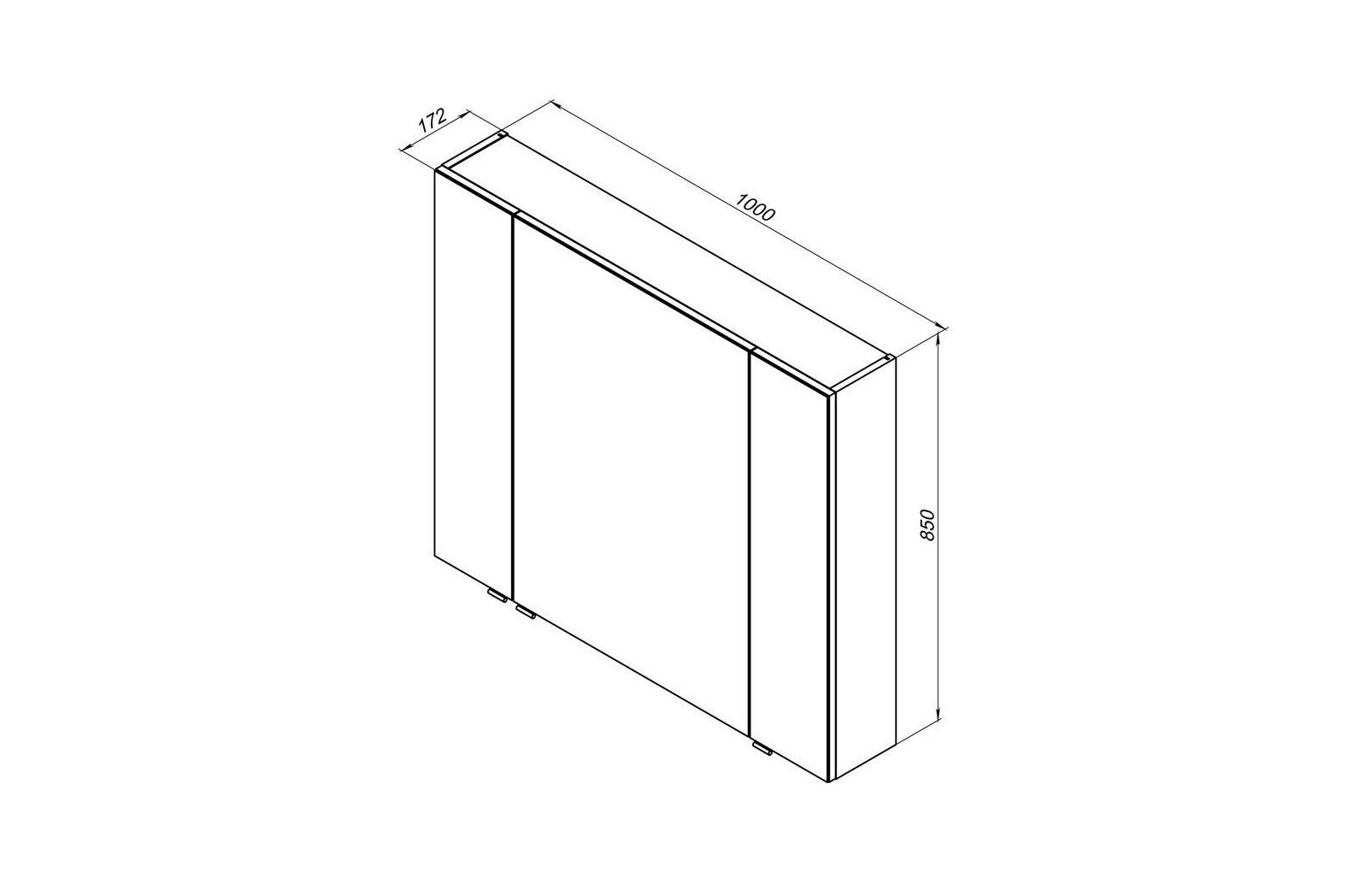 Зеркало-шкаф придаст интерьеру ванной комнаты нотку особого очарования и уникальности. Зеркало шириной 100 см c тремя полками из каленого стекла за тремя распашными дверцами создает дополнительное пространство для хранения косметических средств, кроме того, всё необходимое при умывании будет под рукой.