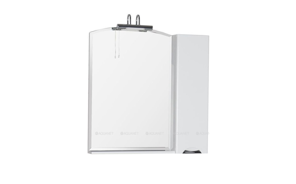 Навесное зеркало «Aquanet» Асти 85 Белый с горизонтальной полкой и шкафчиком в ванную комнату Акванет Асти. Его боковой шкафчик с тремя компактными полками предназначен для самых необходимых мелочей.