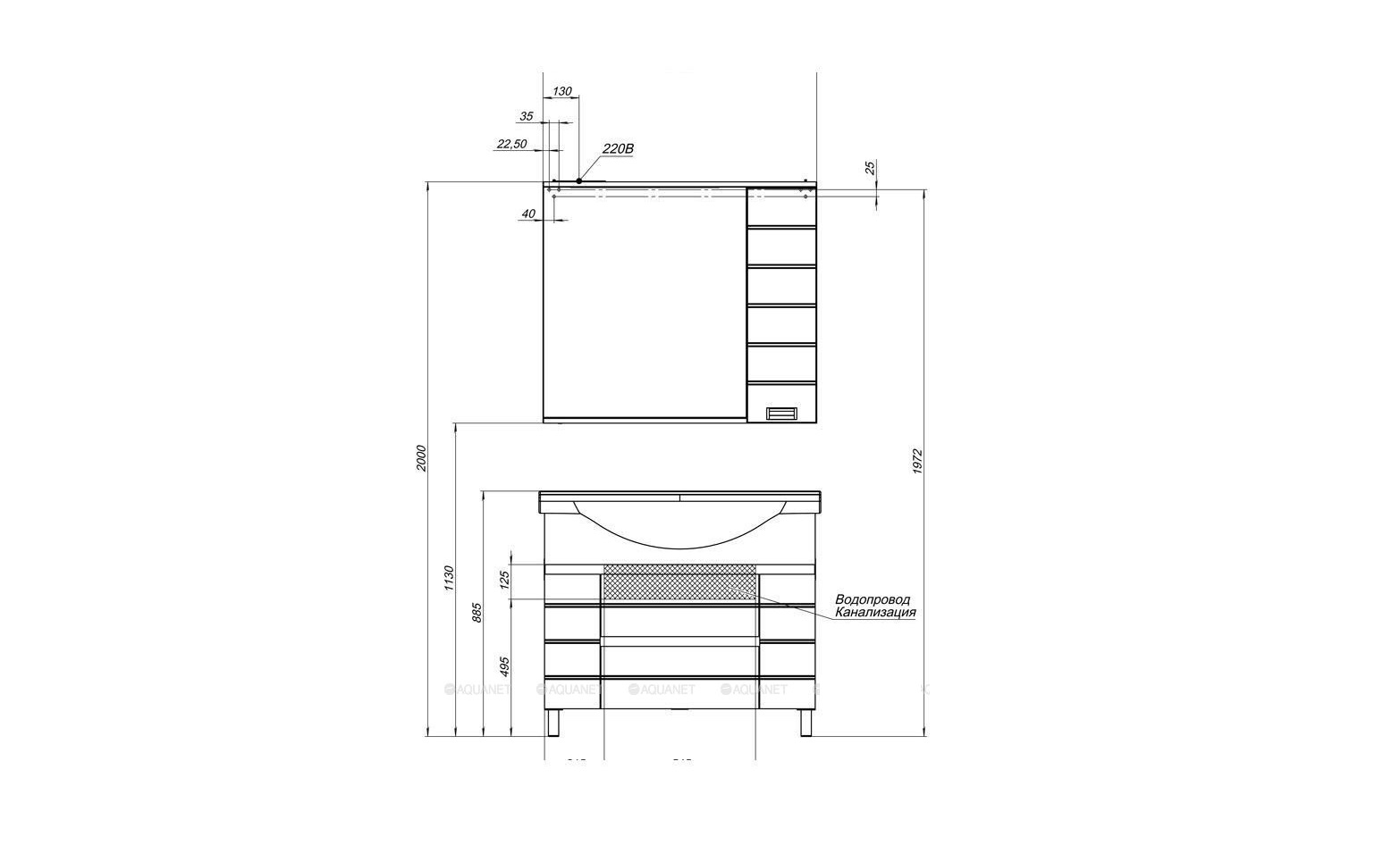 - Зеркало: Aquanet Доминика 100, встроенный LED-светильник, цв.белый, 1 распашная дверца (171922)