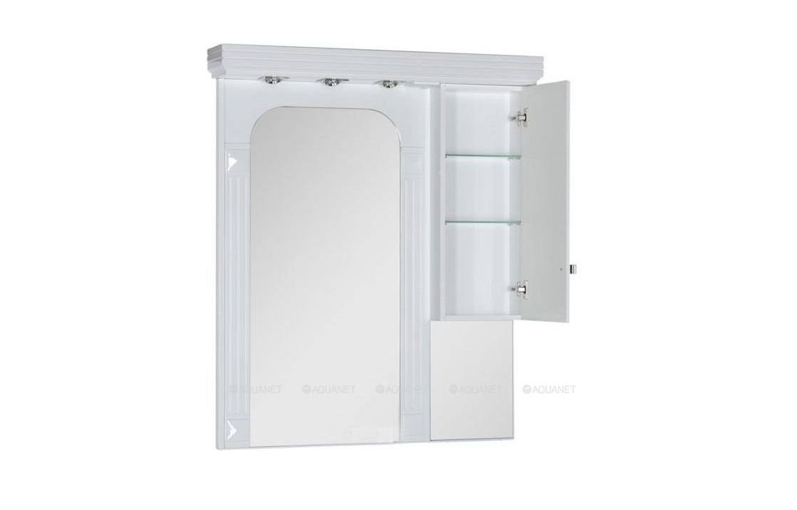 - Зеркало: Aquanet Фредерика 100, цвет белый, встроенные светильники, 1 распашная дверца (171272)