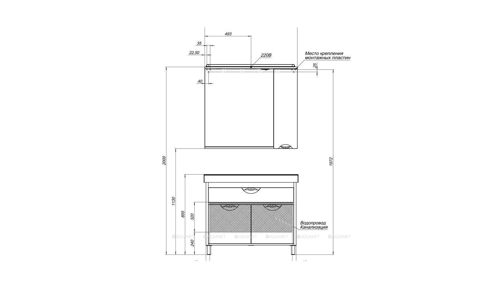 - Зеркало: Aquanet Гретта 100, цвет венге (фасад белый), 1 распашная дверца (173996)