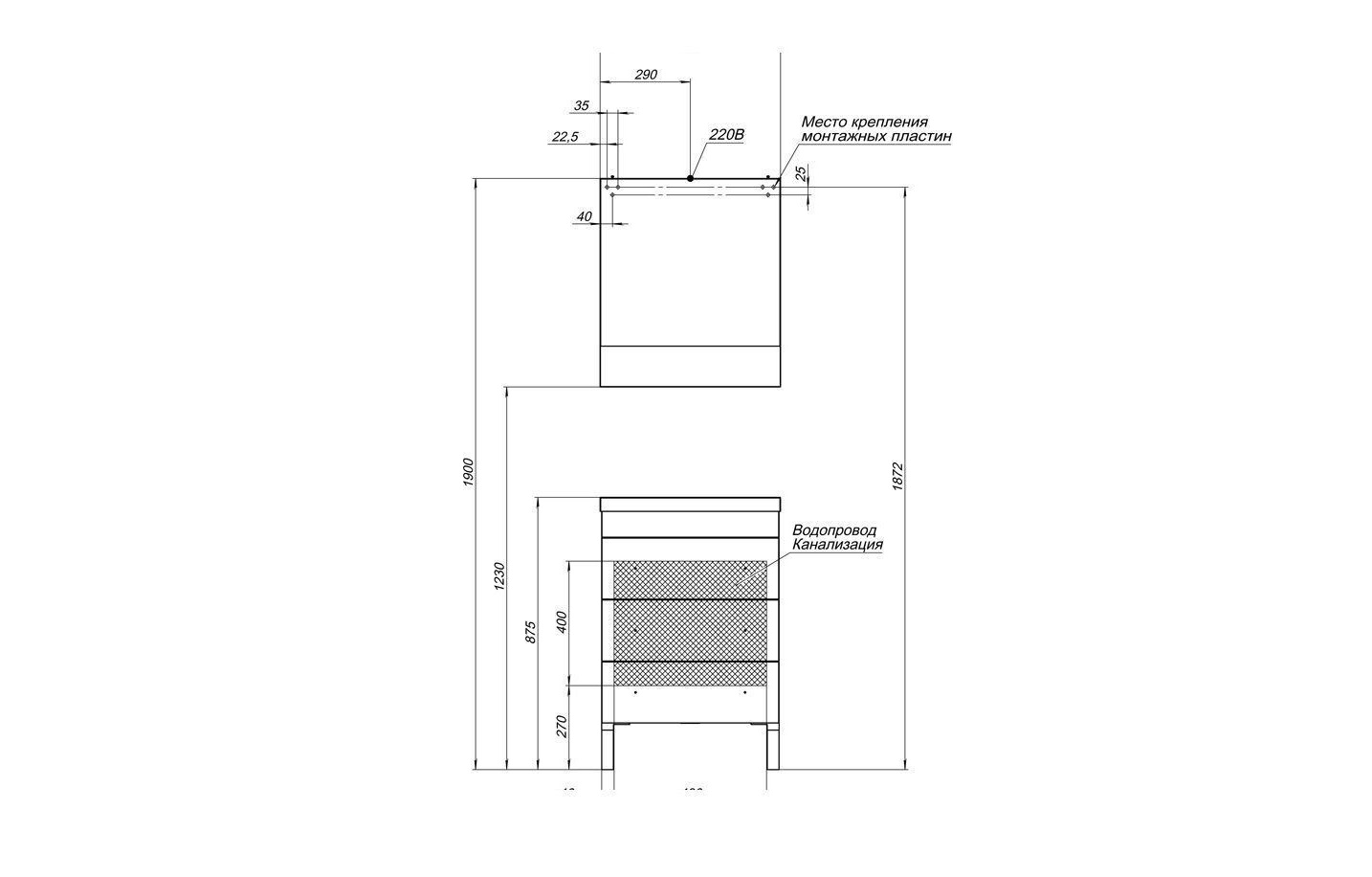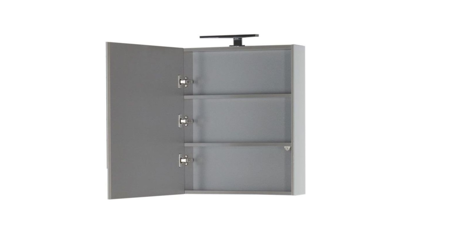 Широкая форма зеркала удобна при использовании вдвоем, а вместительный шкаф позволит держать все необходимые косметические средства в идеальном порядке.