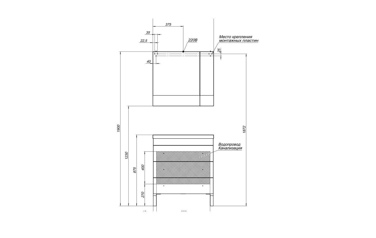 Широкая форма зеркала удобна при использовании вдвоем, а вместительный шкаф позволит держать все необходимые косметические средства в идеальном порядке.
