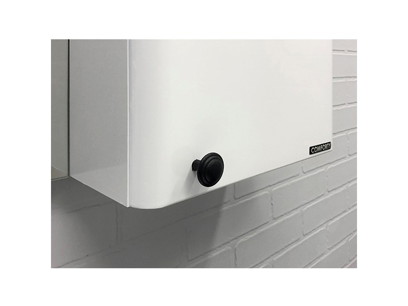Зеркало-шкаф универсально, может быть подвешено как в правом, так и в левом исполнении. Отверстие под ручку не просверлено, с внутренней стороны дверцы нанесена разметка.