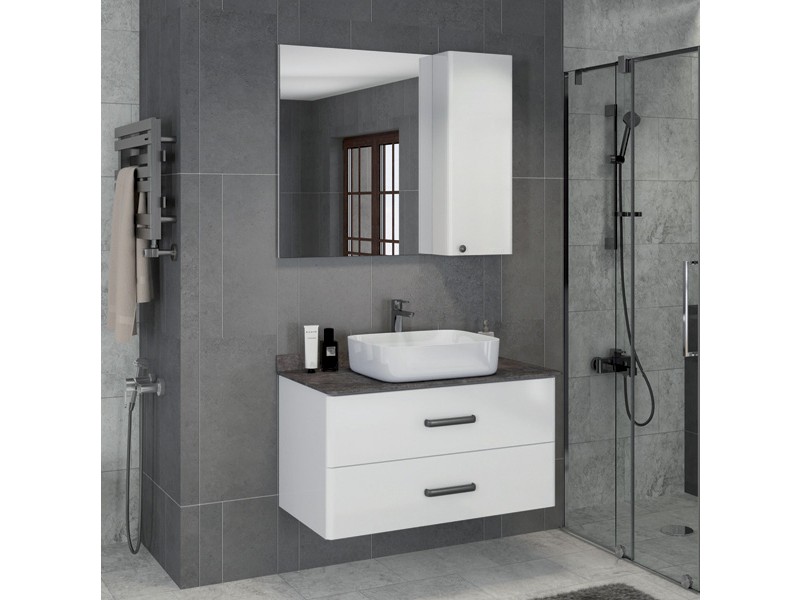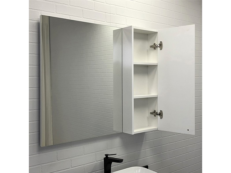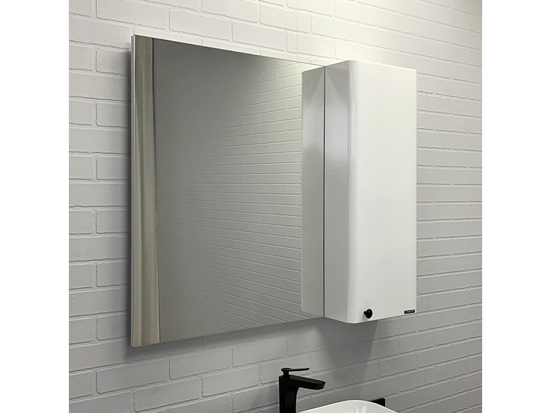 Высококачественное зеркальное полотно с амальгамой на основе серебра. Боковой шкаф из влагостойкого ЛДСП. Фасад из МДФ окрашен белой глянцевой эмалью.