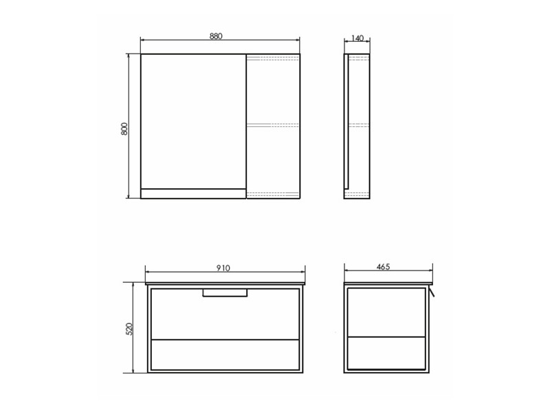 Зеркало и мебельный элемент два отдельных изделия, поэтому могут быть подвешены, как в правом так и в левом варианте.