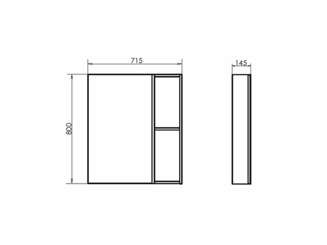 Высококачественное зеркальное полотно с амальгамой на основе серебра. Створка оснащена петлями с плавным закрыванием. Петли у створки снаружи. За зеркальной створкой одна горизонтальная полка, в пространстве открытого хранения - две. Зеркало-шкаф универсально - может быть подвешено в правом и левом варианте.