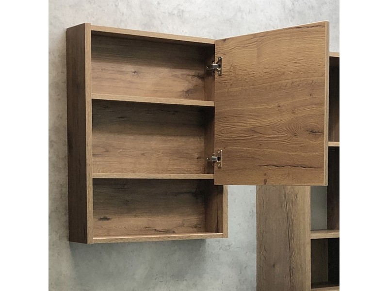 Створка оснащена петлями с плавным закрыванием открывается вправо. За створкой одна горизонтальная полка. Высококачественное зеркальное полотно с амальгамой на основе серебра. Конструкция шкафа позволяет смонтировать зеркальную створку для открывания как вправо, так и влево.