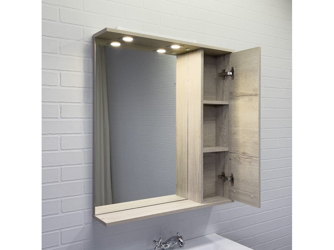 Створка оснащена петлями с плавным закрыванием. Высококачественное зеркальное полотно с амальгамой на основе серебра. В комплекте 2 светильника.