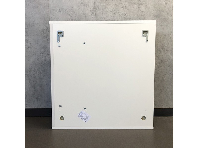 Створка оснащена петлями с плавным закрыванием. Высококачественное зеркальное полотно с амальгамой на основе серебра. Полки и створка покрыты белой матовой эмалью. Без подсветки.