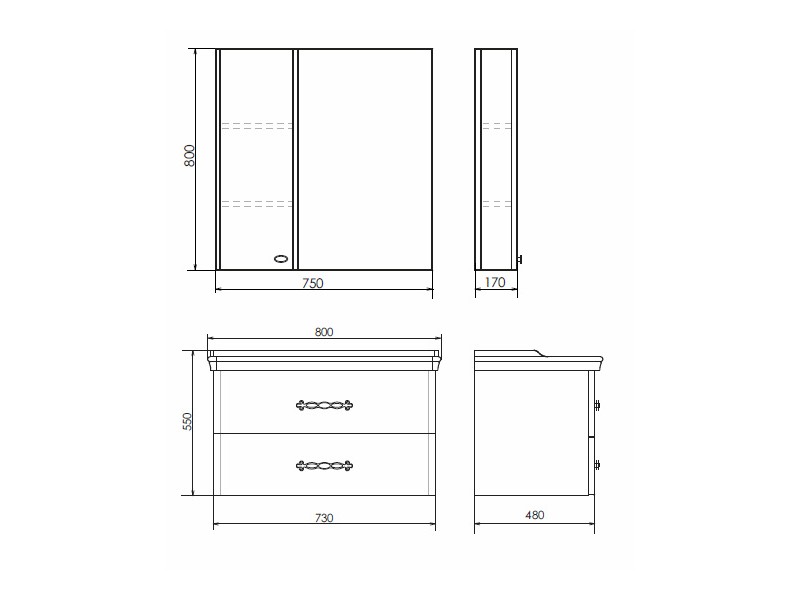 Габариты (ШхВхГ): 800*750*170 мм