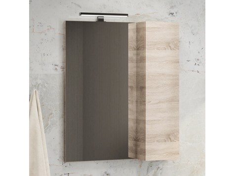 Створка оснащена петлями с плавным закрыванием. Высококачественное зеркальное полотно с амальгамой на основе серебра. Мебельный элемент из влагостойкого ДСП цвет дуб сонома. За дверцей две дополнительные полки. Зеркало-шкаф универсальное, может быть подвешено в правом и левом исполнении.