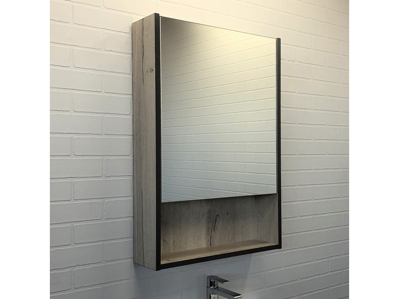 Зеркало-шкаф. Створка оснащена петлями с плавным закрыванием. За створкой одна горизонтальная полка. Высококачественное зеркальное полотно с амальгамой на основе серебра. Конструкция шкафа позволяет смонтировать зеркальную створку для открывания как вправо, так и влево.