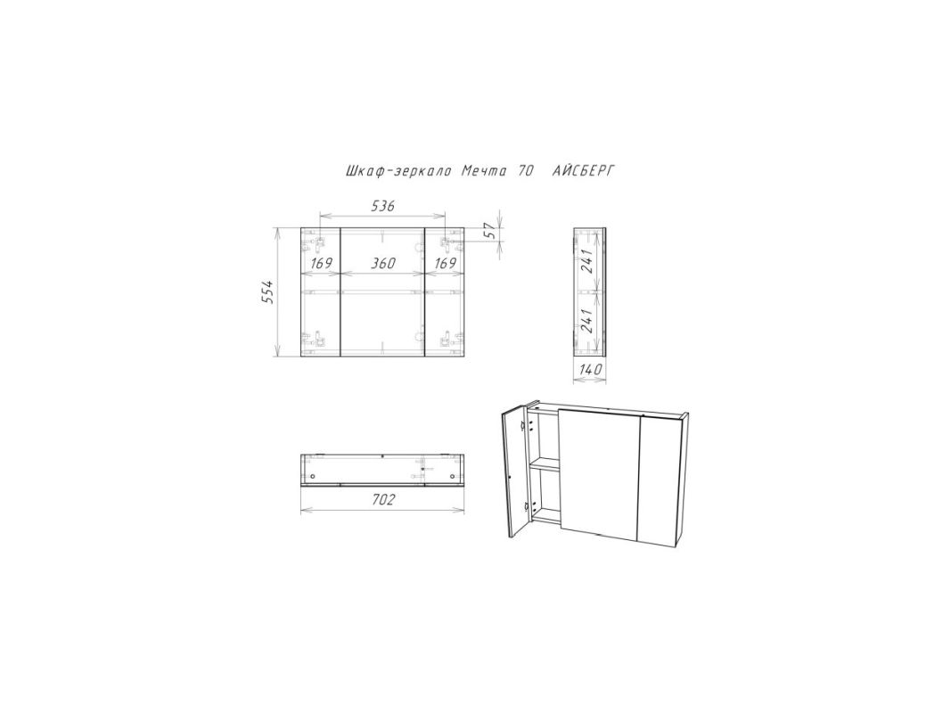 Шкаф – зеркало МЕЧТА внутренне пространство которых разделено полками для удобства размещения гигиенических принадлежностей.