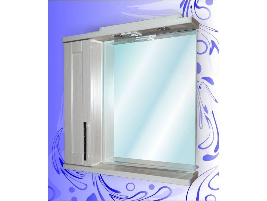 Увеличенная толщина фасада рельефная фрезеровка; Зеркальное полотно имеет декоративный скос по краю - фацет 10мм. Ручка-скоба Валмакс хром глянцевый; Петли мебельные Boyard механизм с доводчиком обеспечивает мягкое и бесшумное закрывание; Два светодиодных светильника блок выключателя с розеткой встроенные в верхнюю панель шкафа |