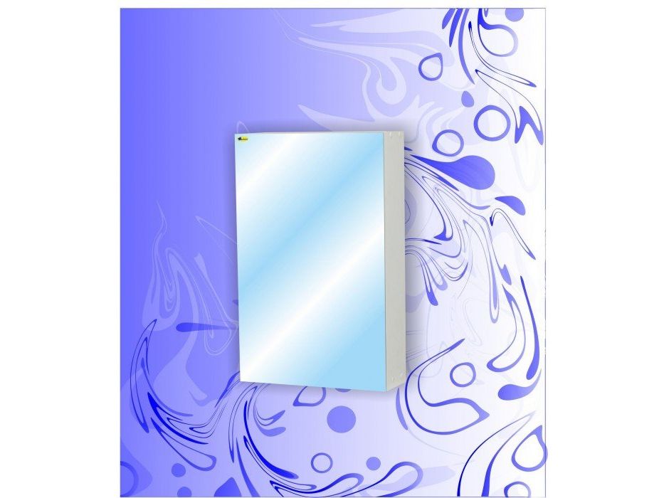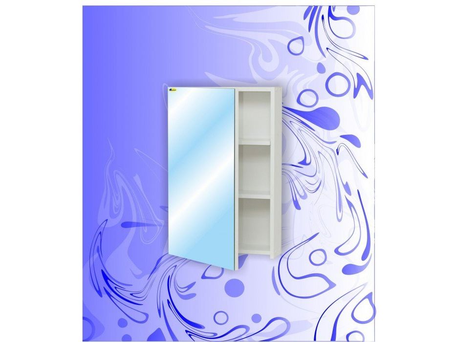 Модель "Град" выполнена в виде зеркального однодверного шкафчика, внутри которого на двух горизонтальных полочках можно разместить косметические и парфюмерные средства.