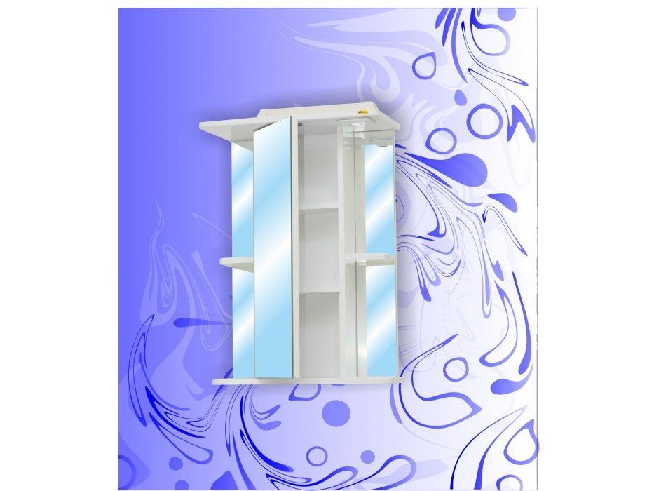 Простая и функциональная модель зеркального шкафчика в ванную комнату "Ника 2" имеет верхнюю светодиодную подсветку, блок выключателя с розеткой для удобства.