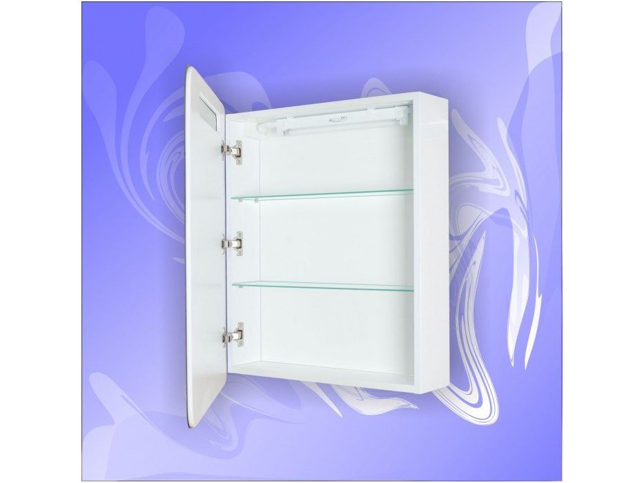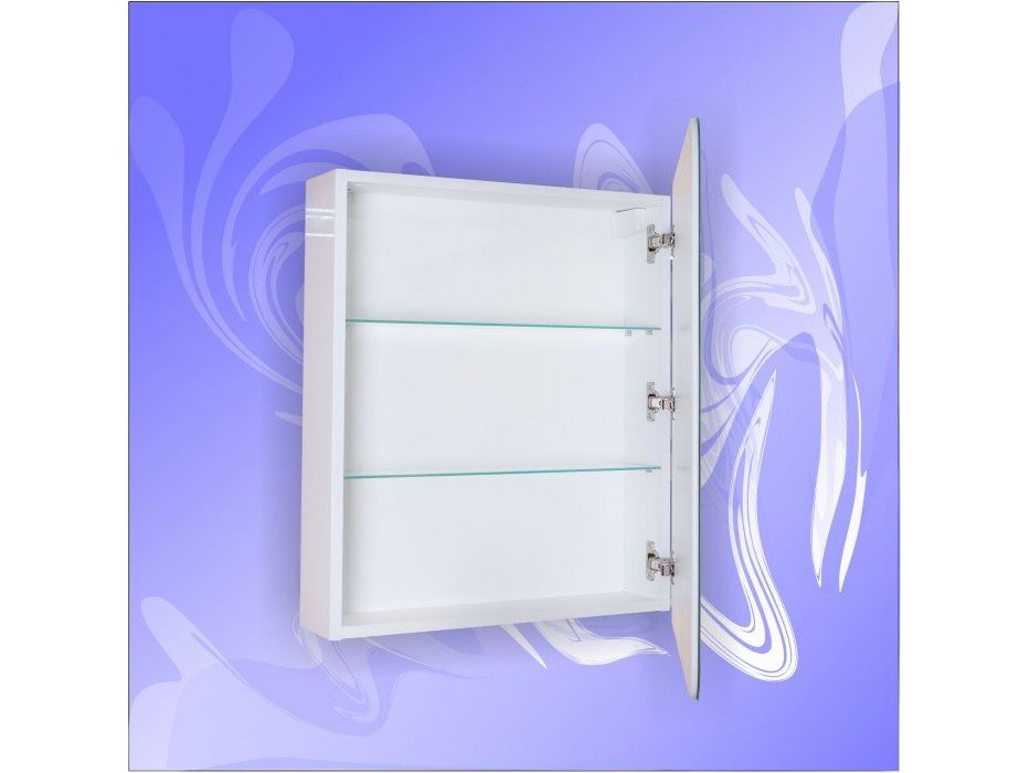 Компактная модель шкафа "Орион" выполнена в виде подвесного зеркального шкафчика, внутри которого за распашной дверцей расположены отделение с двумя стеклянными горизонтальными полочками, где можно разместить парфюмерные и косметические средства.