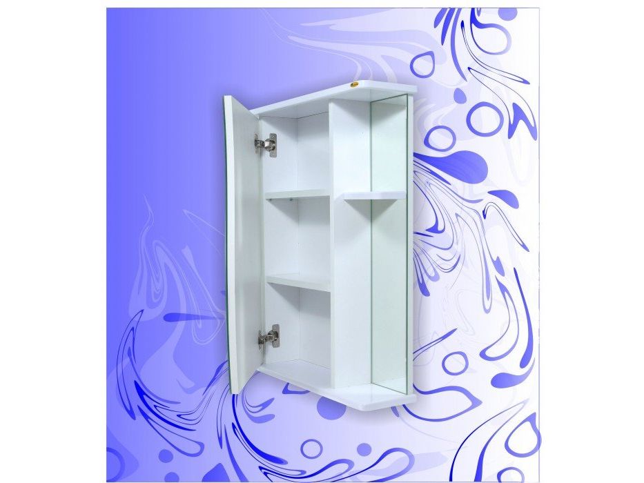 Зеркальный шкаф оснащен двумя съемными полочками.