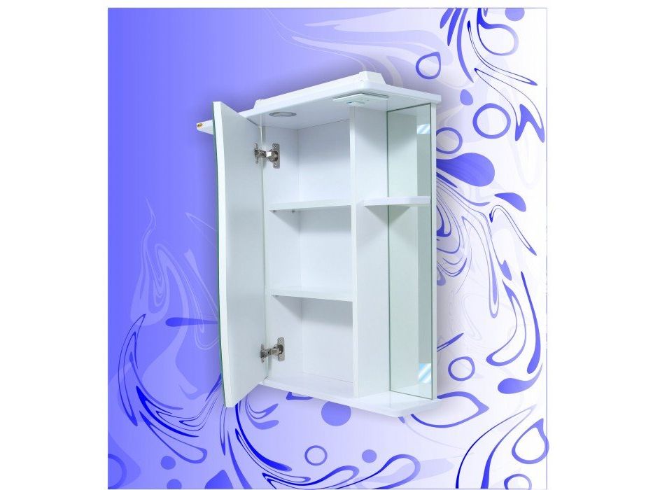 Зеркальный шкаф оснащен двумя съемными полочками.