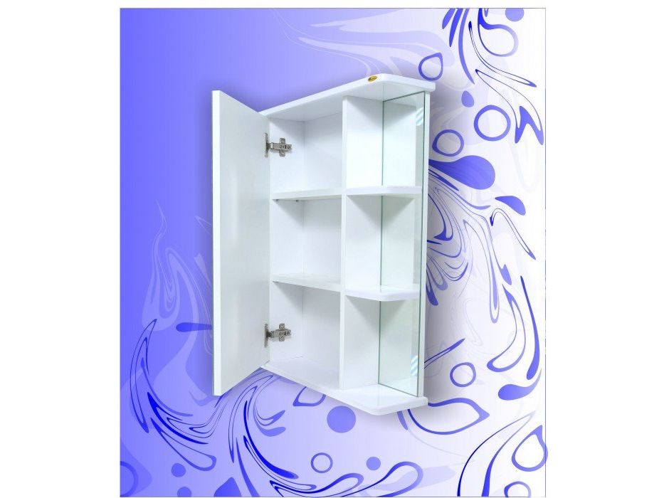 Зеркальный шкаф "Вега" с открытыми полочками - интересная и оригинальная в своем исполнении модель.