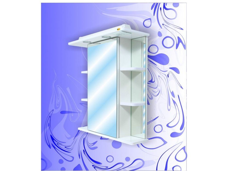 Центральное зеркало выполнено в виде подвесного зеркального шкафа, что очень удобно для хранения косметики и парфюмерии.