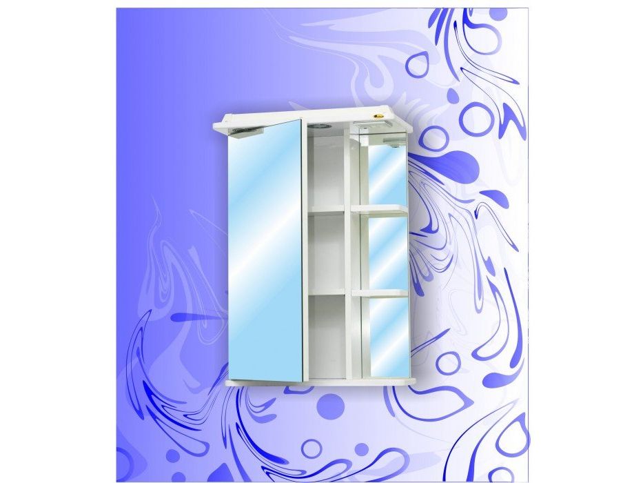 Зеркальный подвесной шкаф "Венера" с открытыми боковыми полочками сочетает в себе простоту и практичность.