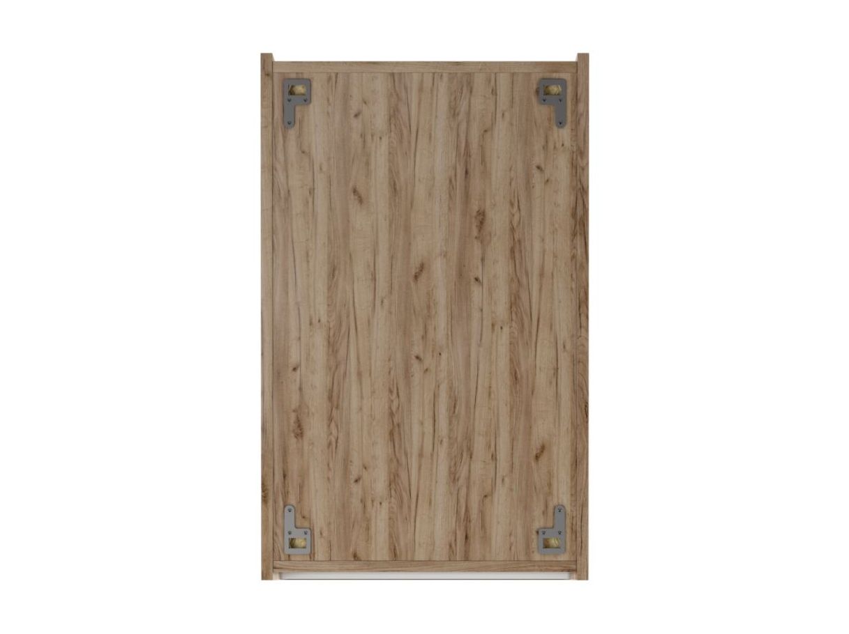 Корпус серии представлен в цвете «Дуб вотан» и выполнен из ЛДСП. Фасад из ЛДСП, покрыт пленкой ПВХ, цвета графит. Фурнитура черного цвета. Размерный ряд от 45 см до 100 см в ширину.