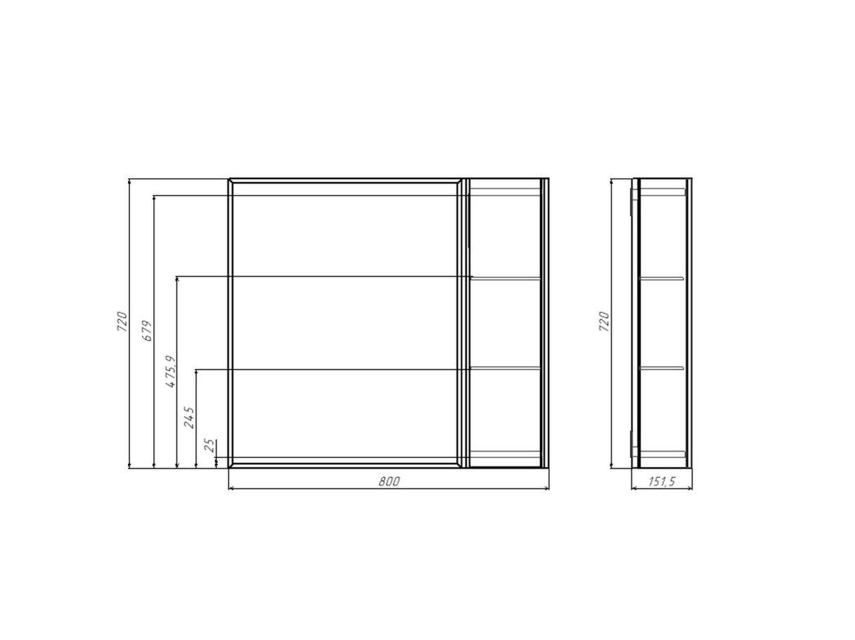 Шкаф – зеркала в цвете Дуб Вотан не универсальные, но они представлены в правом и левом исполнении. Над зеркалом установлена светодиодная подсветка, включается снаружи. Размерный ряд: 60см и 80 см.