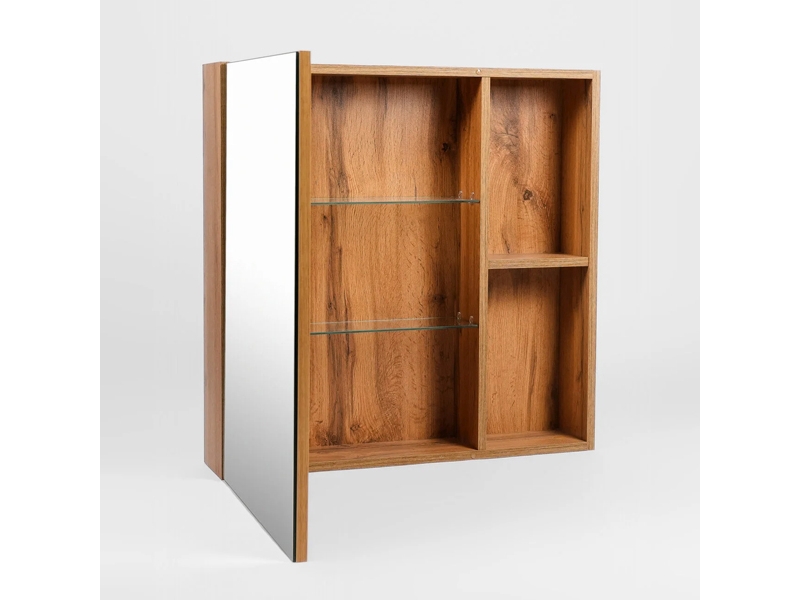 Подвесной зеркальный шкаф Виант Бостон шириной 60 см для ванной комнаты с одной створкой. Зеркальный шкаф универсален может быть подвешен с правым или левым открыванием створки. За створкой две стеклянные полки