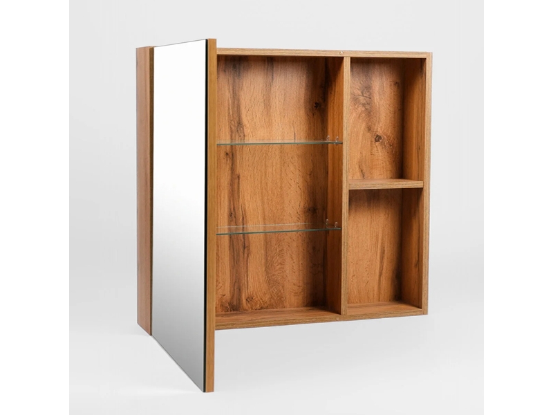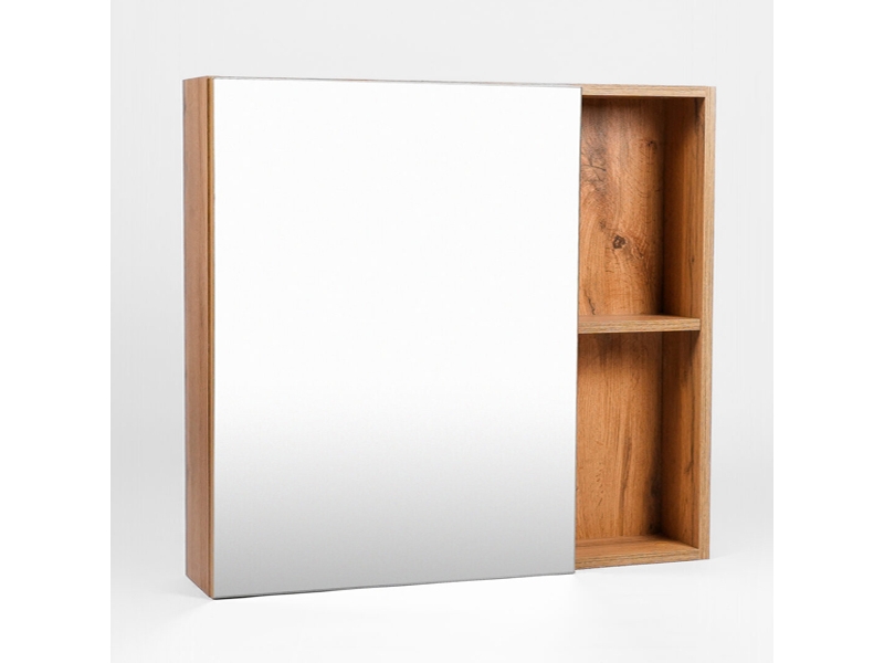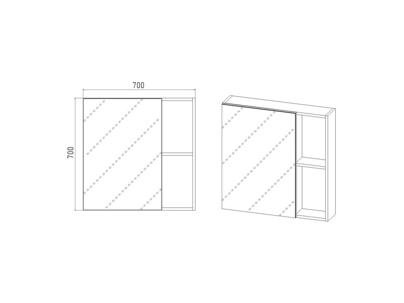 Подвесной зеркальный шкаф Виант Бостон шириной 70 см для ванной комнаты с одной створкой. Зеркальный шкаф универсален может быть подвешен с правым или левым открыванием створки. За створкой две стеклянные полки