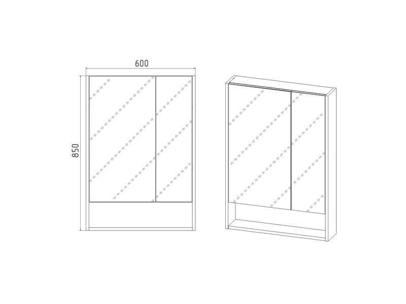 Подвесной зеркальный шкаф Виант Мальта шириной 60 см для ванной комнаты с двумя створками. Зеркальный шкаф универсален может быть подвешен с правым или левым открыванием створок